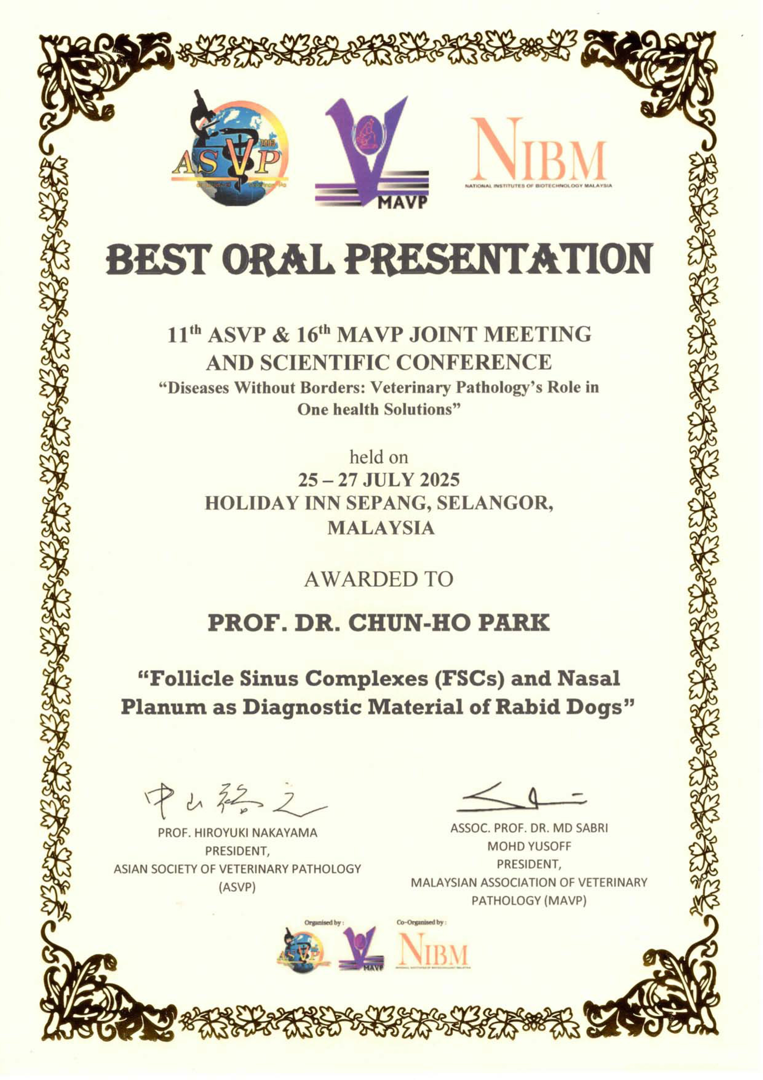 · Best Oral Presentation Award: Associate Prof. Dr. Park ChunHo