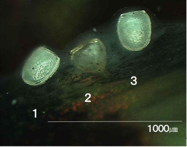 生態情報解析学研究室では,長年にわたり,イシガイ科二枚貝の保全や生態を明らかにする研究を継続してきました。イシガイ科二枚貝は,水の中で水質浄化や他の生物の生息に貢献している,とても重要な種に位置づけられます。実はイシガイ科二枚貝は,その貝種ごとに特定の魚種に寄生するという特異な生活環をもっています。すなわち,雌個体が幼生を吐出し,魚類個体の鰭(ひれ)や鰓(えら)に噛みつくように付着します。すると魚類の皮膚は,1,2時間で幼生が付着した周辺で動いて,幼生自体を覆ってしまうのです。これを,シスト形成を呼びます。
