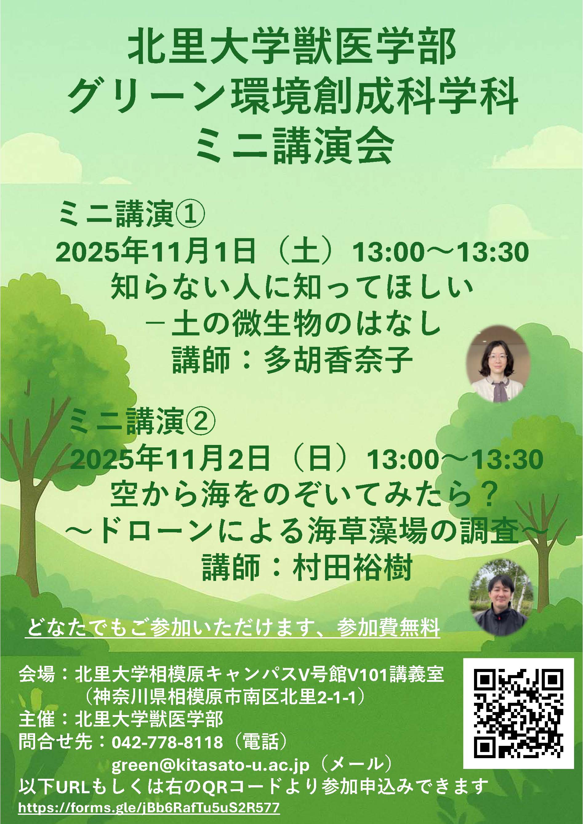グリーン環境創成科学科では、相模原キャンパスで開催される 北里祭(11月1日・2日) にあわせ、今年9月に完成したばかりの V号棟の校舎見学会 と ミニ講演会を実施します。